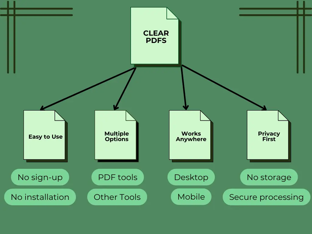 ClearPDFs gives students, creators, and businesses a fast, private toolkit for everyday document and text tasks. No sign‑ups, no watermarks – just simple, effective tools that run entirely in your browser. Whether you need to merge PDFs, count words, or generate SEO slugs, everything happens instantly and securely.